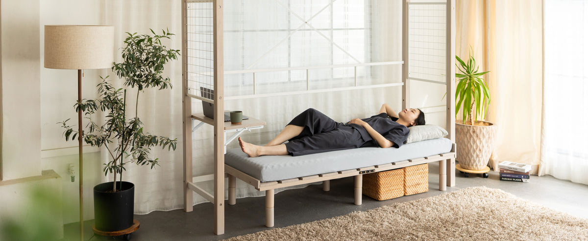 身体に合った敷き寝具で寝姿勢を支えること、温湿度の調節が大切です。体格や季節に合った寝具を選ぶことで、手軽に睡眠の質を高められます。エムールは睡眠と寝心地研究で得た知見をモノづくりに活かしています。