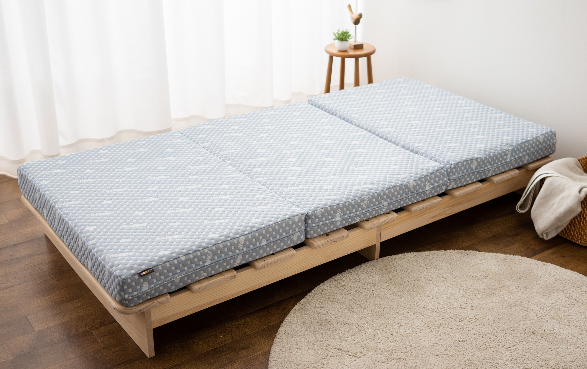ベッドマットレスとしても、床に直接敷いて敷き布団のようにしても使用できる、三つ折りウレタンマットレスです。