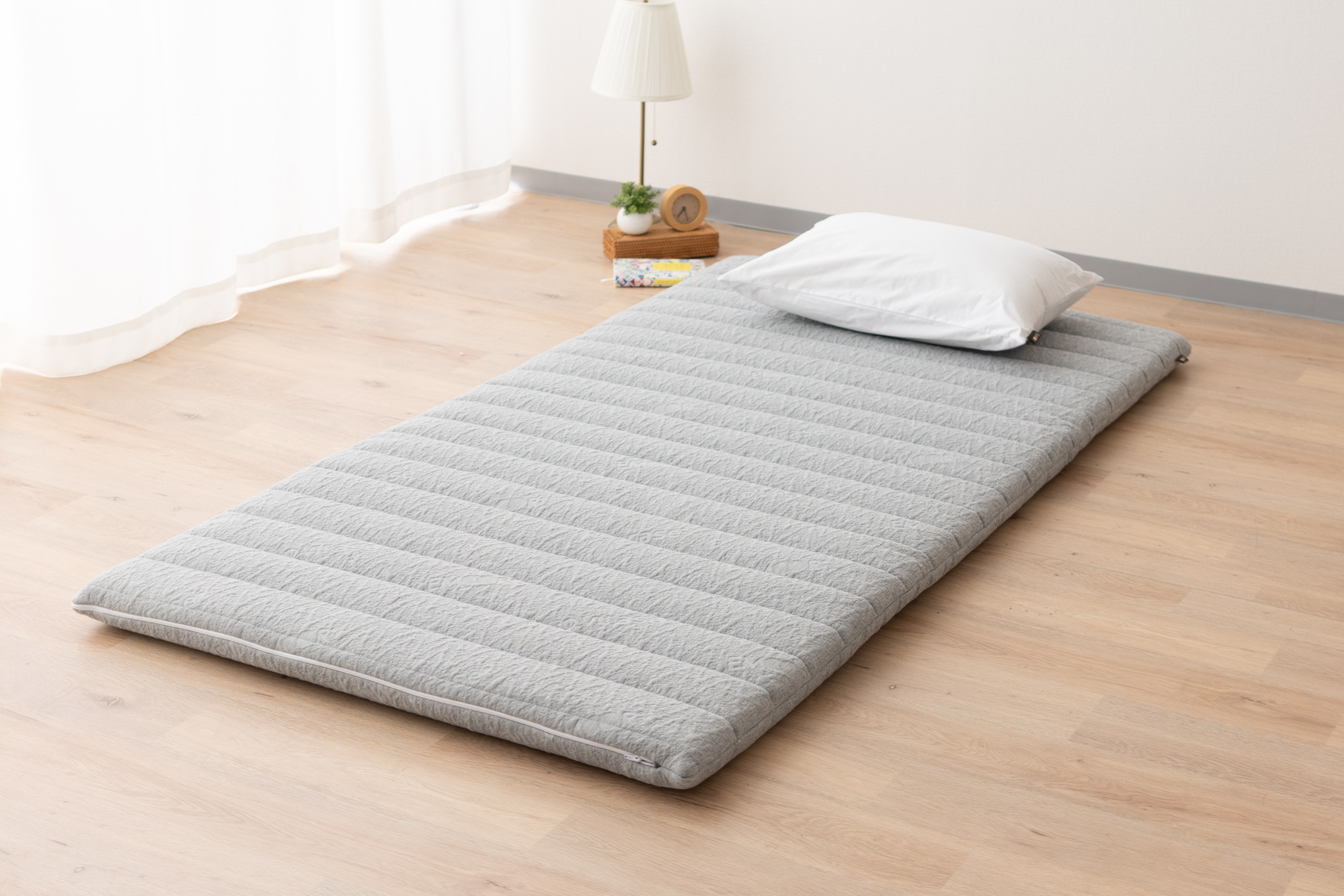 素材 | カバー | 表地:virase®(ポリエステル100% 膨れニット生地) 裏生地:ポリエステル100% 中わた:ポリエステル100%(樹脂わた)(厚み8㎝のみ) |