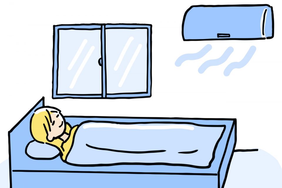 まずは寝室の温度。室内が28℃以下に保たれれば良いのですが、冷やしすぎるのも、温度変化が激しいのも身体には良くありません。