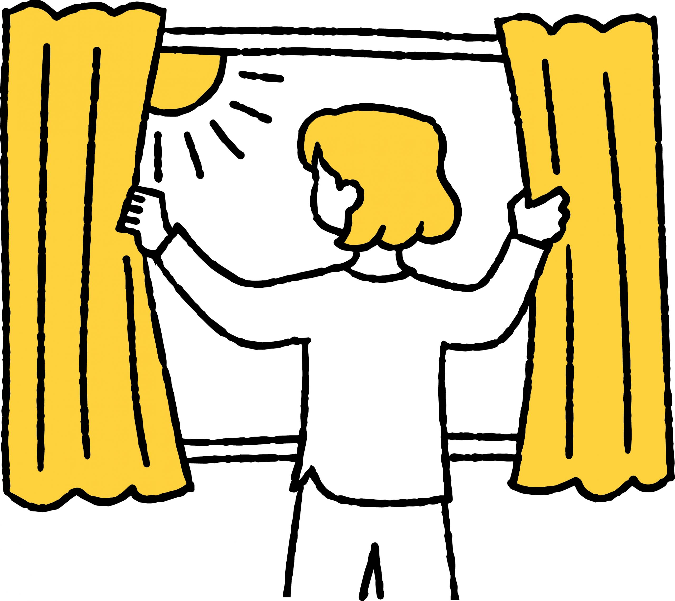 朝目覚めてカーテンを開け、光の刺激で親時計である脳の視交叉上核が活動を開始するとともに朝食をとることで、消化器系のリズムも動き出し、全身が活動モードに入り、順調な一日のスタートとなります。