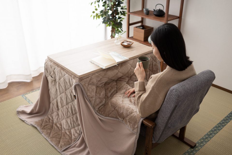 次に、使用方法や機能の違いです。 こたつは座って使うことが一般的で、布団をかけることで足元が暖かくなります。 一方、ハイタイプこたつは椅子やスツールに座って使用します。椅子に座って使用できるため、読書や勉強などもしやすいといえます。 こたつとハイタイプこたつは用途や使い方が異なるため、自分のニーズや部屋のスペースに合わせて選ぶことが重要です。 リラックスやぬくもりを求める場合はこたつがおすすめですが、モダンな雰囲気や広いテーブルを求める場合はハイタイプこたつが適しています。 ポイントは自分の好みや使い方に合わせて選ぶことです。ハイタイプこたつを選ぶときのポイントは?