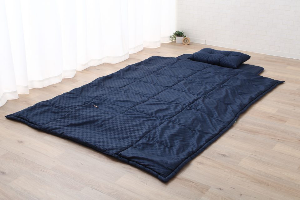 <エムール史上最もコンパクトな布団セット> たたみやすく、コンパクトでありながらいつでも布団の寝心地を体験できる優れものです。 掛け布団、敷き布団、枕の3点セットのため、これひとつ積んでおくだけで安心です。 <日本の職人による良質さ> 日本の提携メーカーで丁寧に制作しています。 素材も良質な綿を使用しており、寝心地もばっちりです。