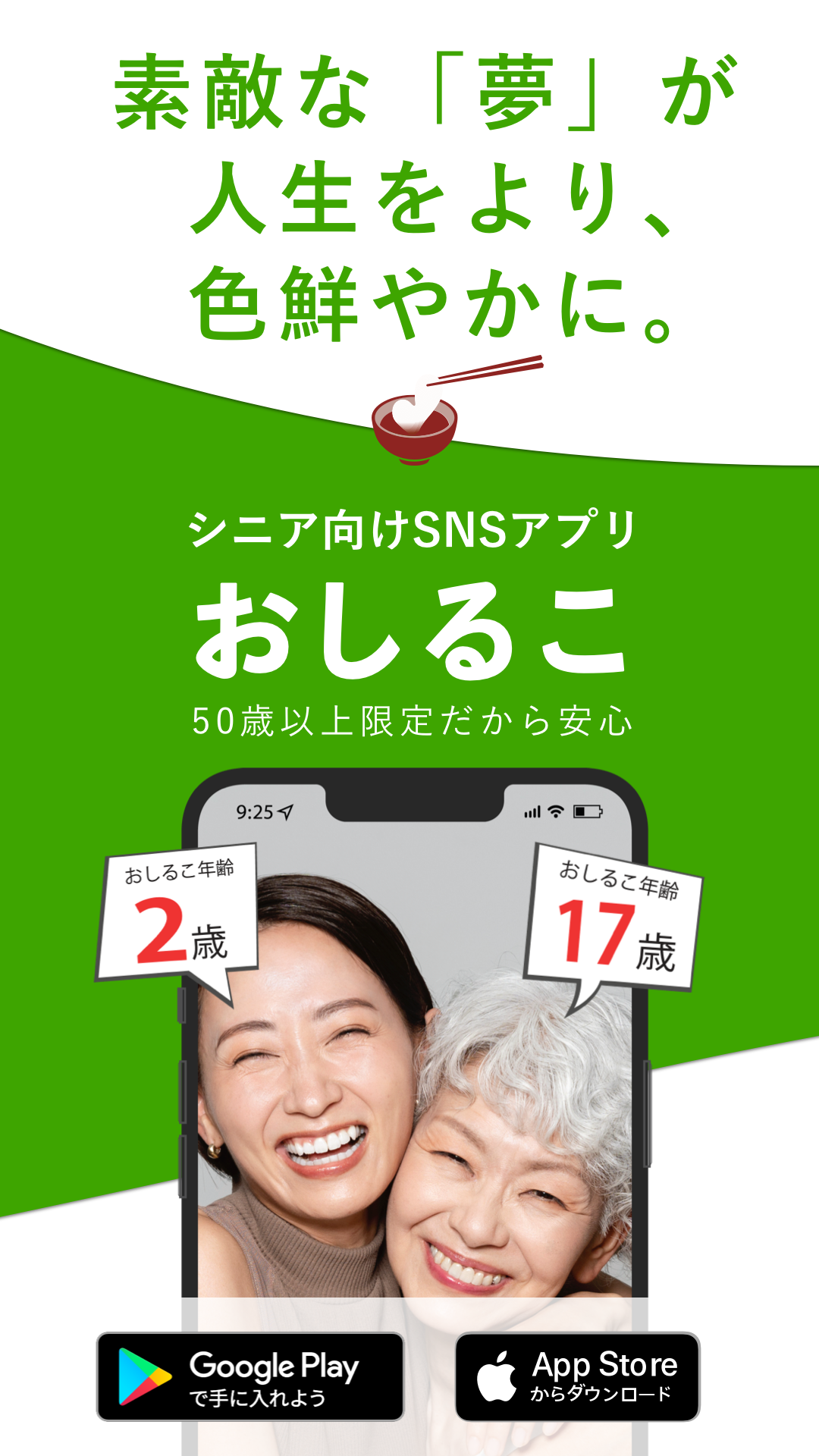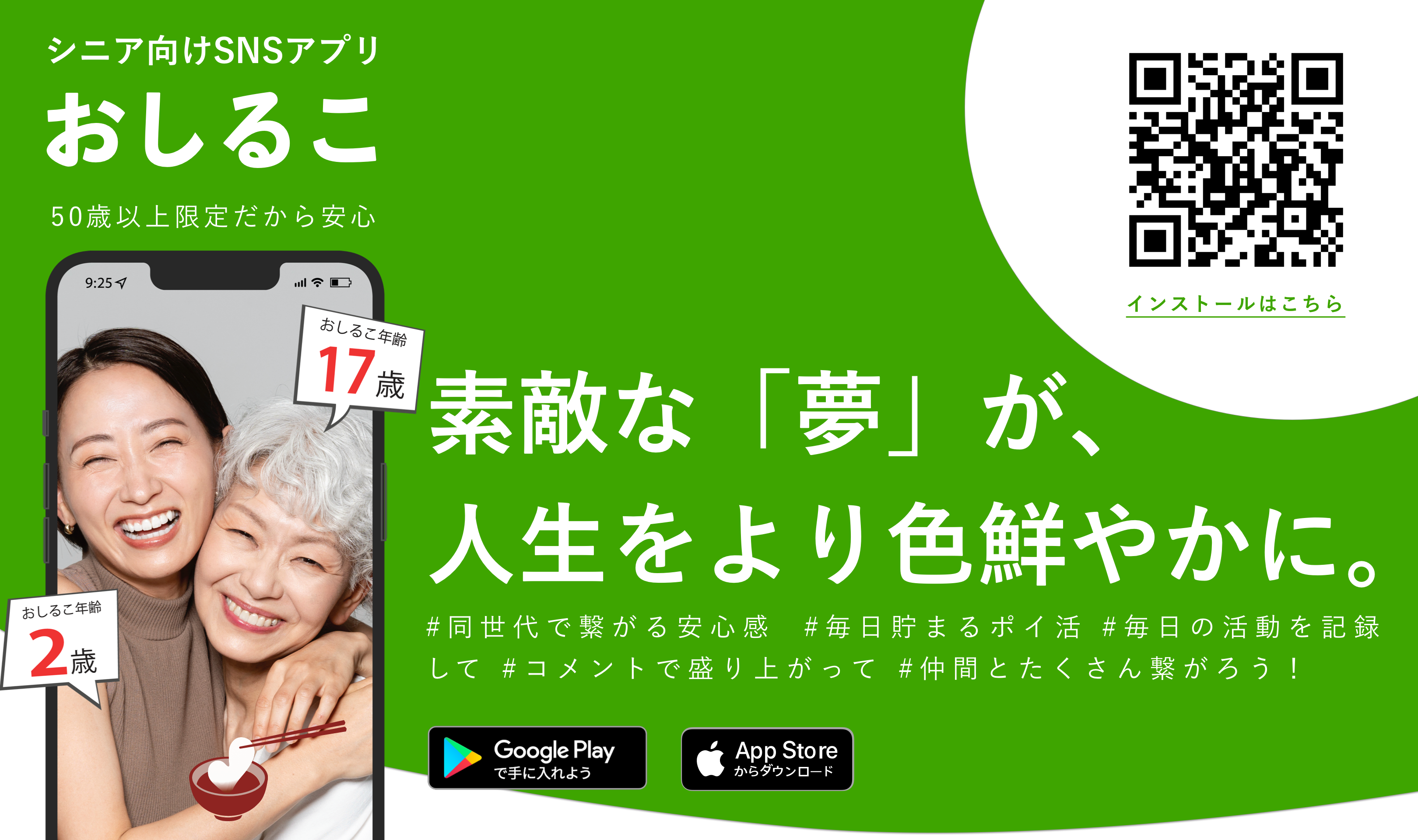 シニア向けSNSアプリ「おしるこ」