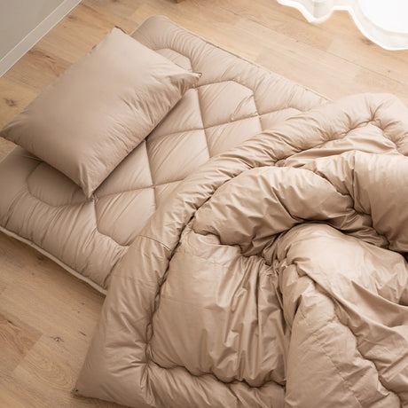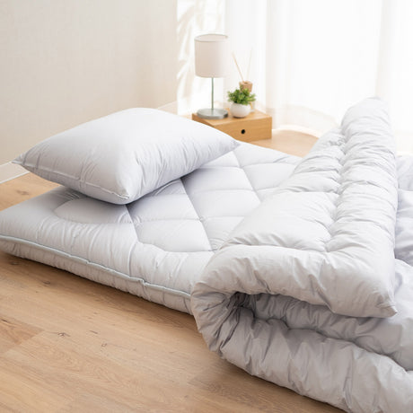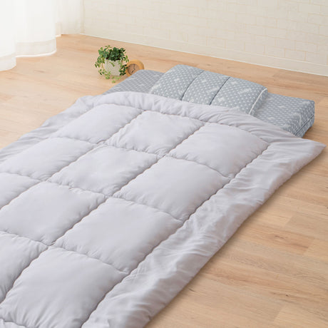 大きくは、枕・敷き布団・掛け布団の3点セットとカバー付きの6点セットがございます。 セット内容として最も一般的なのは、まくら・敷き布団・掛け布団の3点がセットになったものです。これだけでも眠れますが、敷き布団は洗えない場合が多いため、衛生面を考えて、枕カバー・敷き布団カバー・掛け布団カバーといった布団カバーもセットになった「6点セット」を選ぶと良いでしょう。