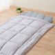 寝具の中で最も大切な役割は支持性、つまり敷き布団の性能です。寝返りや寝姿勢に影響を及ぼすため、自分に合った素材やサイズの敷き寝具を選ぶことが重要です。サイズ(広さ)は使う人の体格や人数に合わせて選びましょう。シングルサイズは一般的な一人用で、6畳程度のお部屋に置いても圧迫感なく敷くことができます。大柄な方はセミダブルサイズ、二人以上で眠る場合はダブルサイズを用意しましょう。 布団カバーは、肌に直接触れるため、見た目だけでなく、素材のもつ風合いや機能に注目して選びましょう。綿は吸湿発散性に優れ柔らかく、リネンは丈夫でサラリとした触感が特徴です。防ダニ機能をもつカバーは高密度繊維で物理的にダニやほこりを通しにくいタイプと、ダニ忌避剤を塗布したタイプがあります。