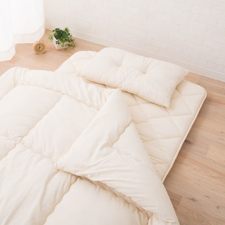 大きくは、枕・敷き布団・掛け布団の3点セットとカバー付きの6点セットがございます。 セット内容として最も一般的なのは、まくら・敷き布団・掛け布団の3点がセットになったものです。これだけでも眠れますが、敷き布団は洗えない場合が多いため、衛生面を考えて、枕カバー・敷き布団カバー・掛け布団カバーといった布団カバーもセットになった「6点セット」を選ぶと良いでしょう。