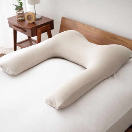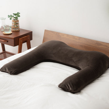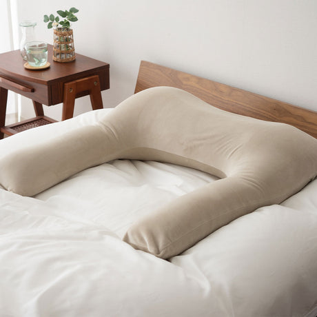 寝心地や寝姿勢に関係します。 枕には、オーソドックスな長方形のものだけでなく様々な形のものがあります。例えば、肩からしっかり支えるタイプの大きい枕で寝ると、上半身全体が支えられるため、寝返りがしやすくなったり、圧力が分散されコリが解消されたりといった効果があることも。また、仰向けではなく横向きで寝る方用の枕もあります。選ぶポイントは、自分の寝姿勢と頸椎弧のかたち。枕は、複数個持っておいて気分や体調に合わせて使い分けるのがオススメです。