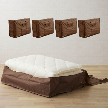 消臭加工やビニール加工のものなどさまざま! 一見同じに見える布団収納ケース、実は機能がさまざま!ニオイが気になる方には、消臭調湿効果があるものがオススメ!また、水濡れなどが気になる方には内側ビニール加工のものなどもあるので安心です。取っ手やファスナー位置なども異なるので収納場所や目的に合った一枚を選びましょう。