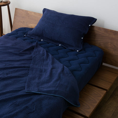 厚手のタオルケットがオススメです。 タオルケットは、ガーゼケットより厚みがあり保温力にも優れています。適度な保温性があるタオルケットは1年中使えます。ちょっとしたお昼寝や毛布ではまだ暑すぎる秋口や、寒い冬でも体に馴染みやすいため、布団との間にできた空間を塞ぐことができ、冷たい空気が入り込むのを防いでくれます。吸水性が高く、お手入れも簡単なので、お手入れしにくい冬のお布団と組み合わせて使うと毎日清潔に使えて快適です。