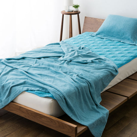 厚手のタオルケットがオススメです。 タオルケットは、ガーゼケットより厚みがあり保温力にも優れています。適度な保温性があるタオルケットは1年中使えます。ちょっとしたお昼寝や毛布ではまだ暑すぎる秋口や、寒い冬でも体に馴染みやすいため、布団との間にできた空間を塞ぐことができ、冷たい空気が入り込むのを防いでくれます。吸水性が高く、お手入れも簡単なので、お手入れしにくい冬のお布団と組み合わせて使うと毎日清潔に使えて快適です。