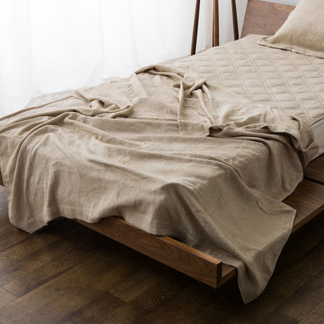 ケットの大事なポイントは吸水性・保温性・織り方です。 ケットは夏に使用する方が多いと思います。そんな方は汗や湿気などをきちんと吸収してくれるものを選びましょう。また、ケットは保温性があり体に馴染みやすいため、秋口や冬にも活躍します。一年を通じて使いたい方は、あまり薄いものではなく、少し厚手のものを選ぶと良いでしょう。さらに、肌触りの好みも大切です。肌触りは織り方や素材によって異なります。好みや目的に応じたものを選びましょう。