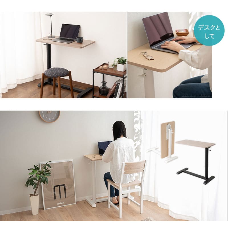 高さ調節が可能な昇降機能を備え、PC作業や読書、食事など用途に応じて柔軟に対応します。