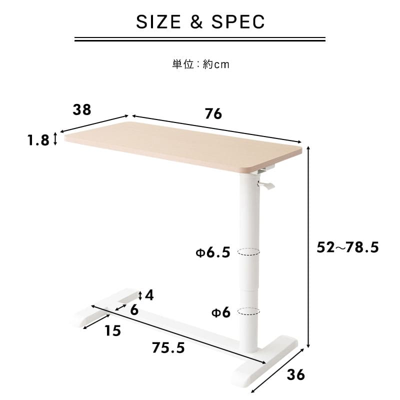 サイズ | 全体:約幅76×奥行38×高さ52-78.5cm 天板:約幅76×奥行38cm |