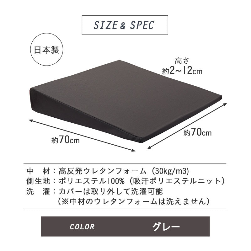 組成 | カバー:ポリエステル100%(吸汗ポリエステルニット) 中材:高反発ウレタンフォーム 30kg/m³ |