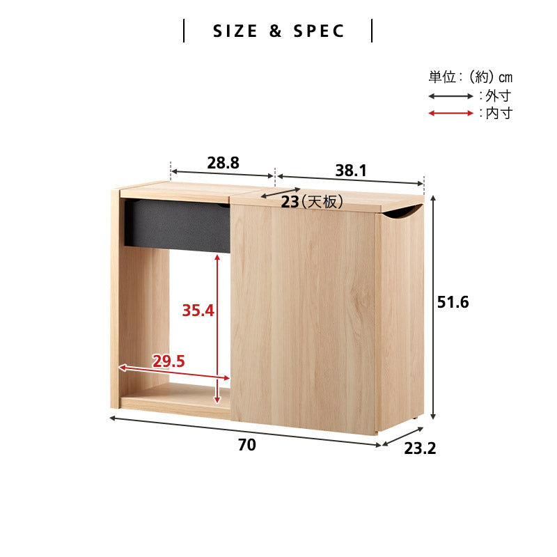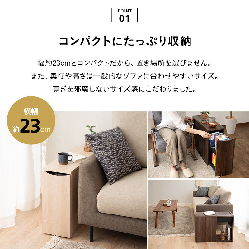 コンパクトながら収納力抜群で、幅約23cmの本体は場所を選ばず設置できるのが特長です。