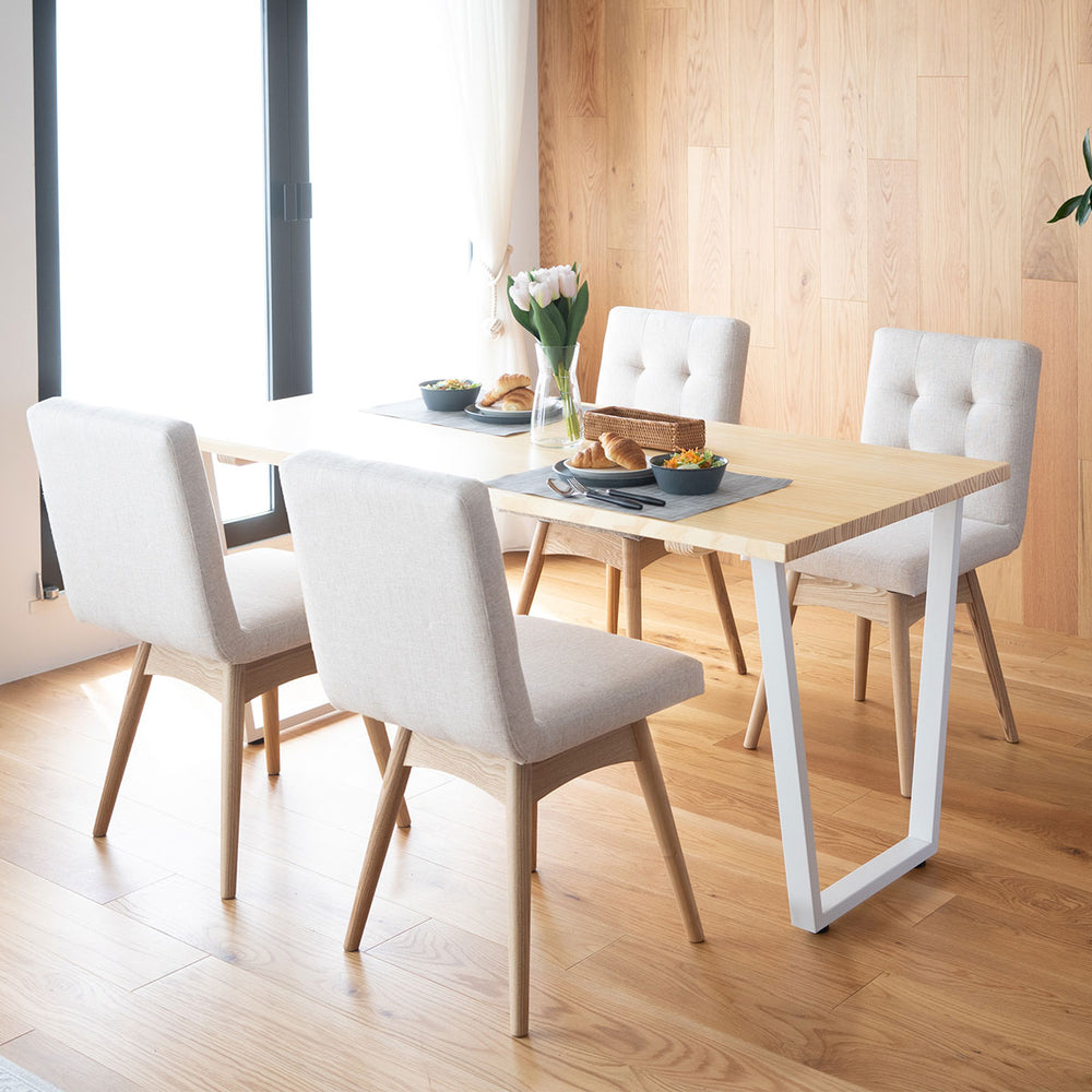 温かみある天然木の脚と床を傷つけにくい底脚、細部までこだわった造りが特徴です。