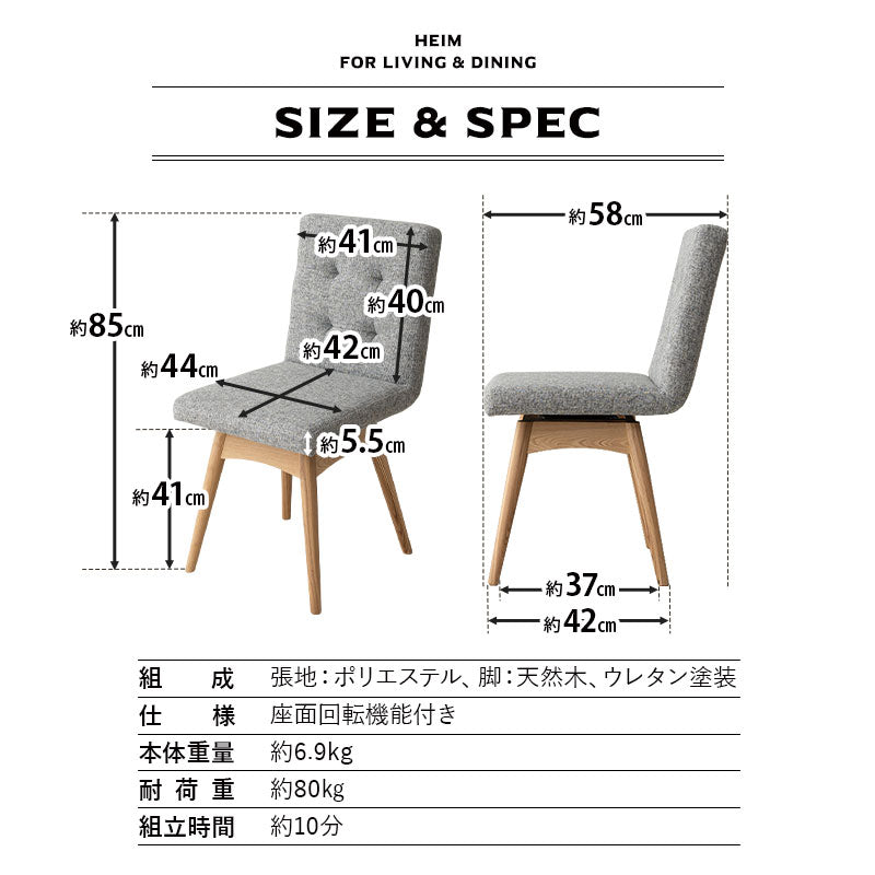 品名 | 立ち上がりしやすい 回転 ダイニングチェア |