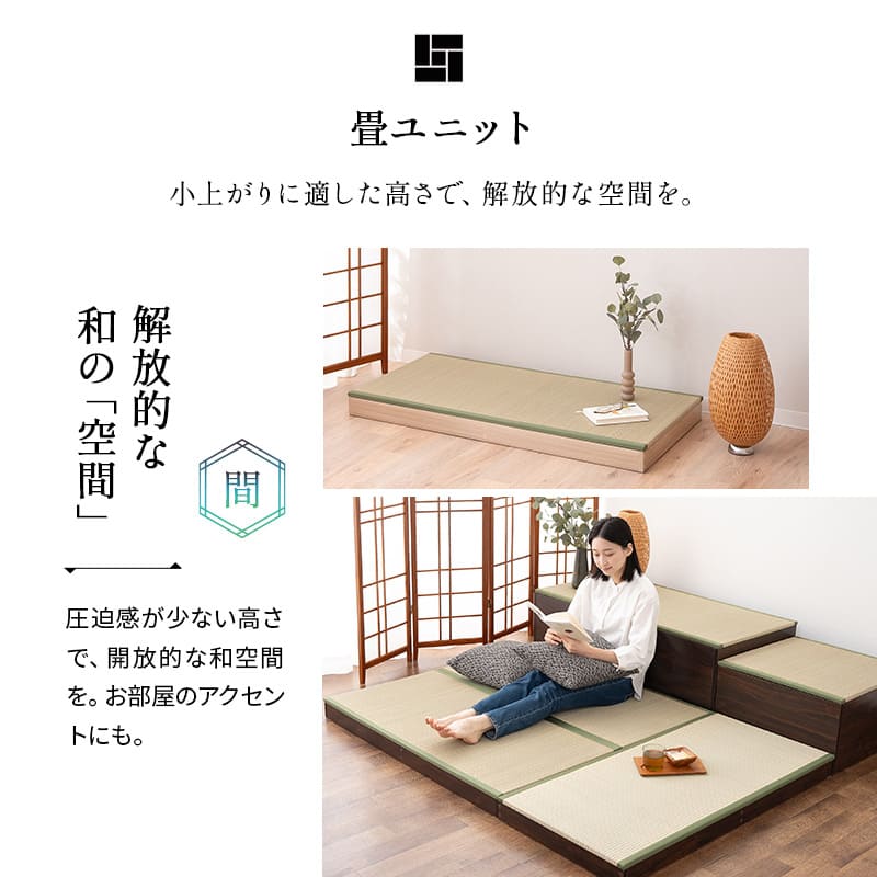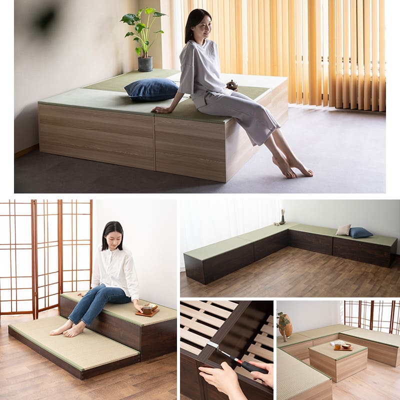 本体:合成樹脂化粧合板 畳部:天然い草、パーチクルボード、ウレタンフォーム スノコ:桐天然木 |