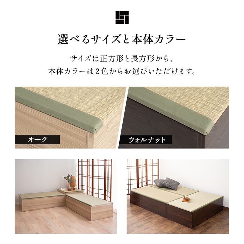 長方形と正方形、6タイプのユニットを自由に組み合わせて、生活スタイルやスペースに適した畳空間を作れます。