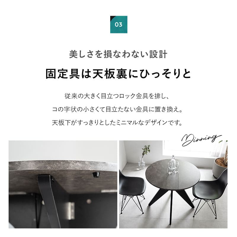 天板下はミニマルデザインで美しく、目立たないコの字金具によるすっきりした仕上がりです。