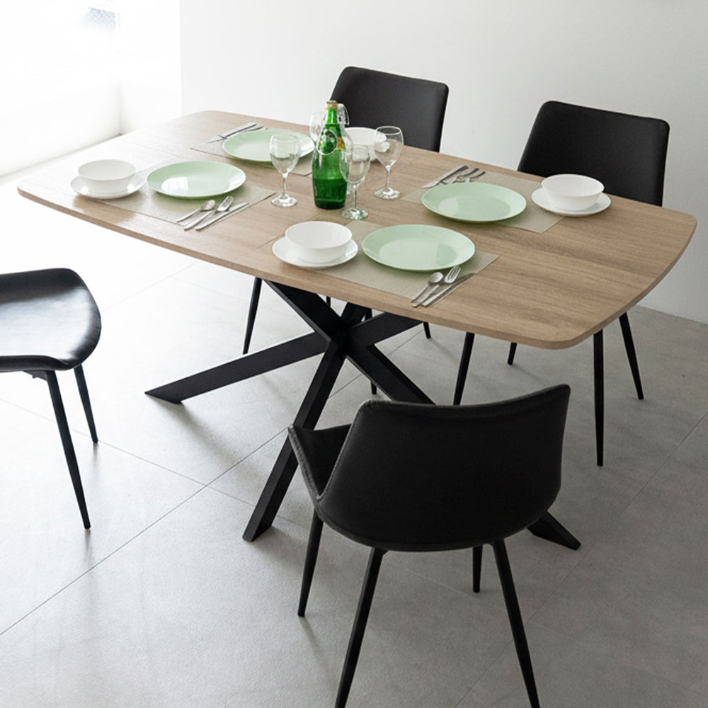 マットブラックのクロス脚と木目調天板が調和し、安定感とデザイン性を両立しながら、動線を妨げず快適に使えます。