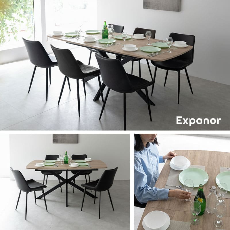 シーンに合わせて柔軟に姿を変える伸長式ダイニングテーブル
