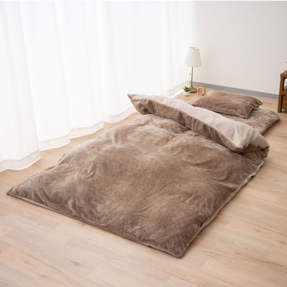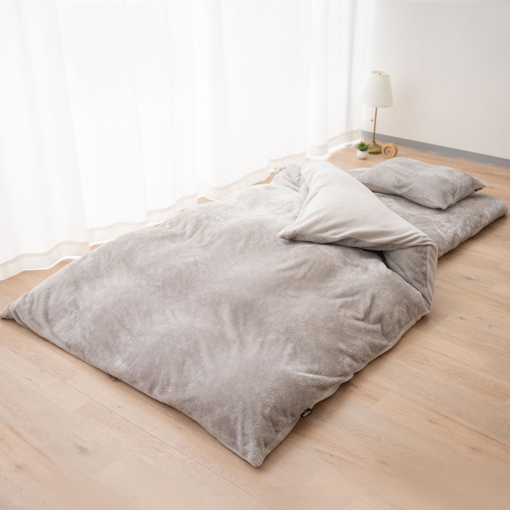 掛け布団カバー | ■サイズ シングルサイズ:約幅150×奥行210cm ■組成 表地:ポリエステル100%(マイクロフリース) 毛羽部分:ポリエステル100%(フランネルボア) グランド部分:ポリエステル70%、レーヨン30%(エムールヒート50%使用) 裏面:ポリプロピレン不織布(ボンディング仕様) ※パイルの長さ:8mm ■仕様 留めヒモ付き 片側全開ファスナー式 |