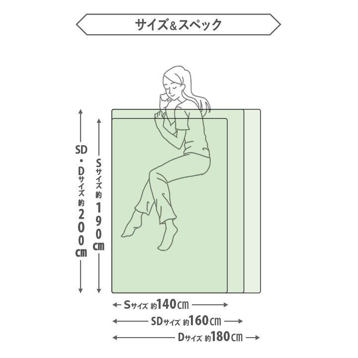 サイズ | シングルサイズ:約140×190cm セミダブル:約160×200cm ダブル:約180×200cm |