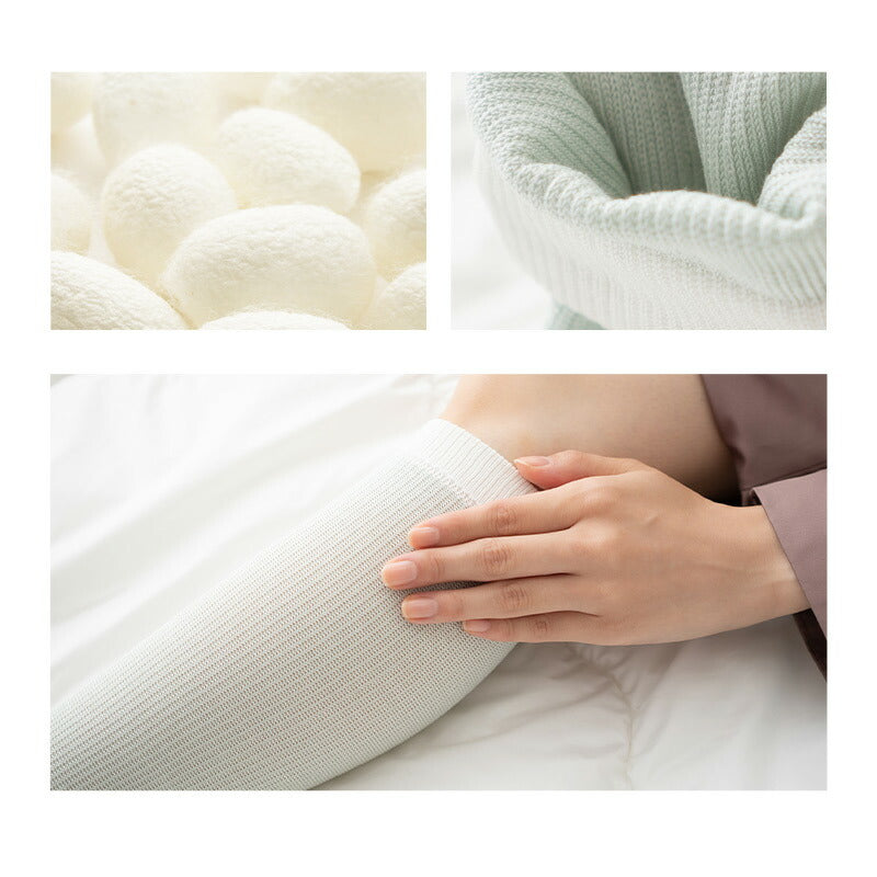 肌に触れる部分はシルク100%で、しっとりやさしい保湿・保温性が特長です。