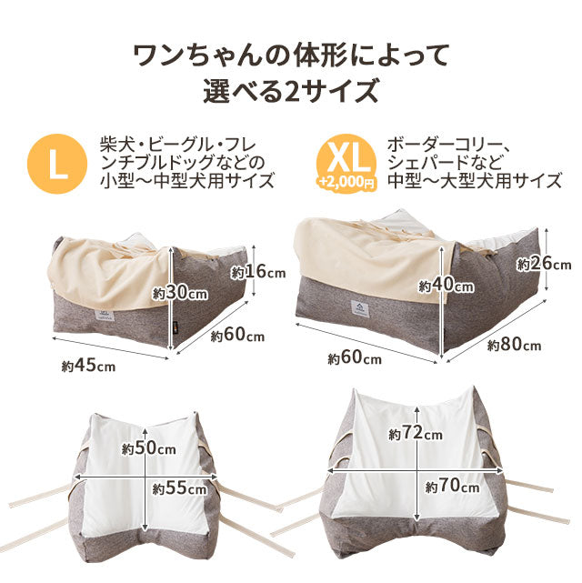 寸法 | ・Lサイズ:約45×60×30cm(使用標準ペット体重:中型犬用・12kgまで) ・XLサイズ:約60×80×40cm(使用標準ペット体重:大型犬用・30kgまで) |