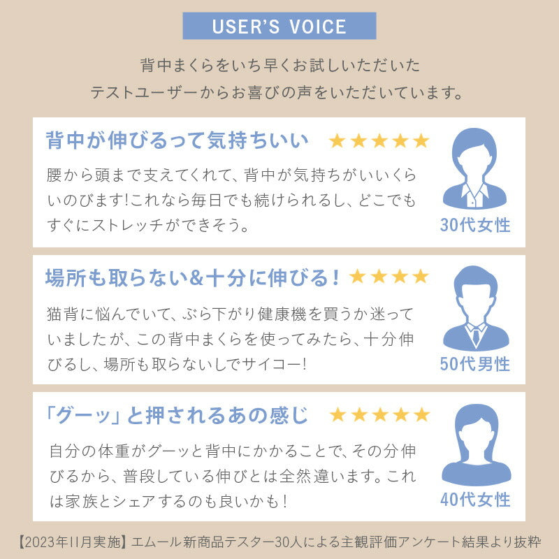 眠る前に10分間乗るだけで、背中のストレッチとリフレッシュが手軽に可能です。