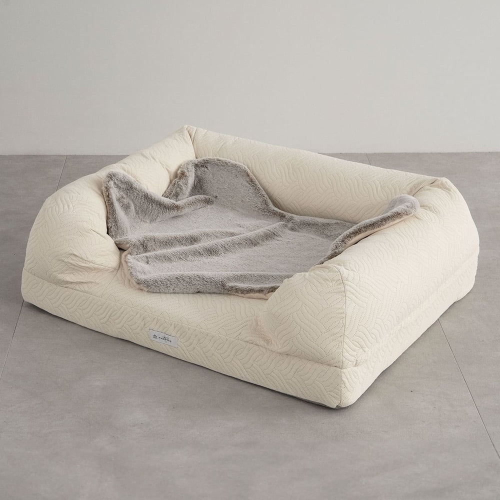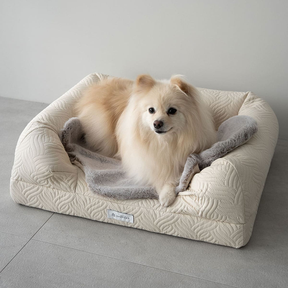 寸法 | ■Mサイズ 本体:約幅62×奥行50×高さ16cm (内寸:約幅46×奥行42×厚み7cm) ブランケット:約45×70cm ■Lサイズ 本体:約幅80×奥行68×高さ23cm (内寸:約幅55×奥行54×厚み9cm) ブランケット:約55×85cm |