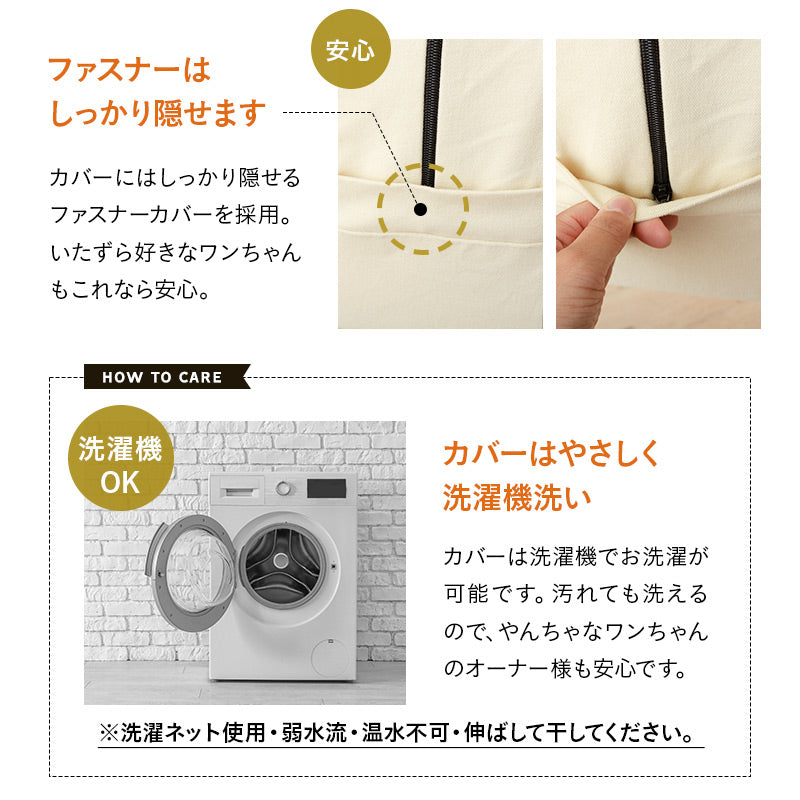 洗濯 | ■カバー 取り外して洗濯機洗い可能 (※洗濯ネット使用・弱水流・温水不可・伸ばして干すこと推奨) ■防水インナーカバー 汚れた部分を拭き取ってください。 |