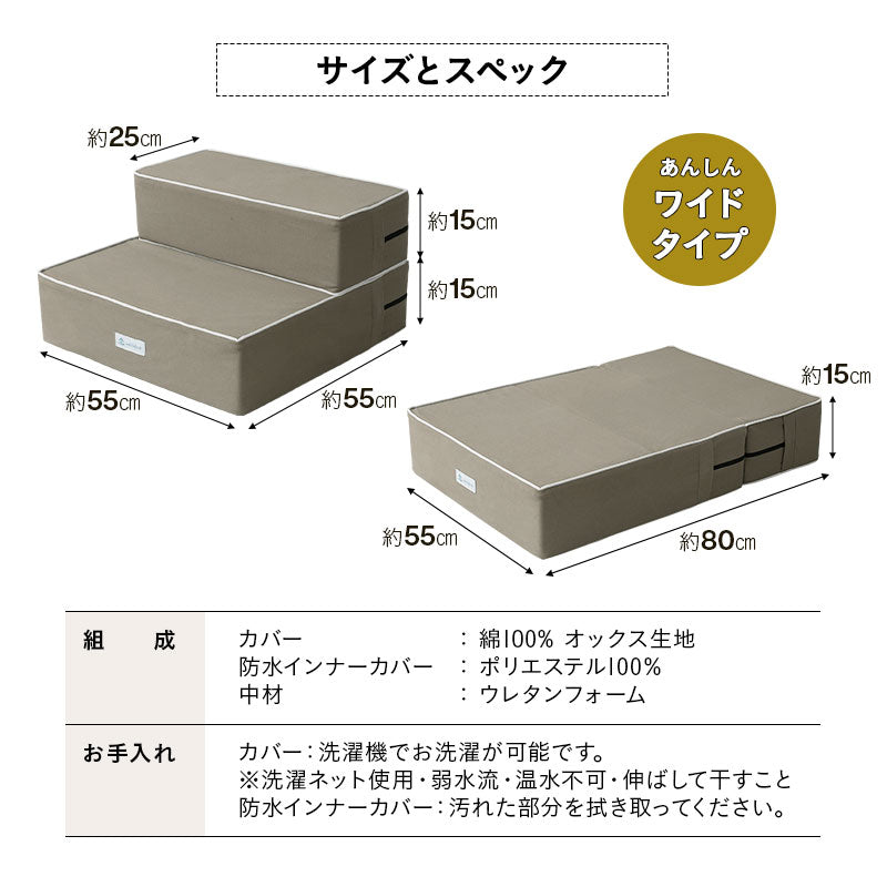 従来より約15cm広くしたワイドタイプが新登場し、上り下りが苦手な愛犬も安心して使えます。