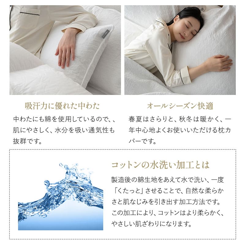 コットン100%の水洗い加工生地は柔らかい肌触りで、静電気も起きにくく敏感肌にも最適です。