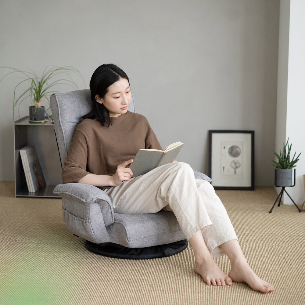 360度回転する座面は、座ったままリモコンやテーブルにもアプローチでき、立ち座りもとてもスムーズです。