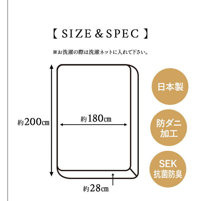 サイズ | キングサイズ:約180×200×28cm ※こちらのサイズは生地幅より大きい幅になるため、生地のつなぎが入ります。ご理解・ご了承ください。 |