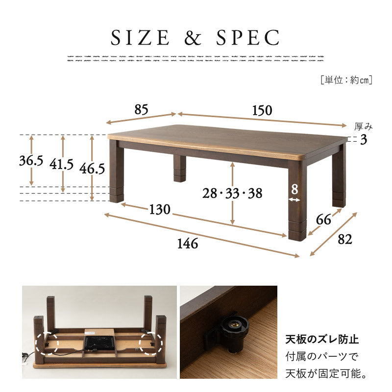 品名 | こたつテーブル 木心(きごころ) 幅150cm |