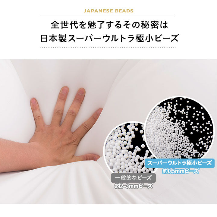 素材 | 【カバー(ノーマル)】 伸縮しない生地:綿100% 伸縮する生地:綿95%、ポリウレタン5% 【インナーカバー】 ポリエステル95%、ポリウレタン5% 【ビーズ】 発泡ポリスチレンビーズ(約0.5mm) |