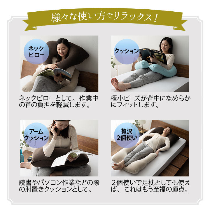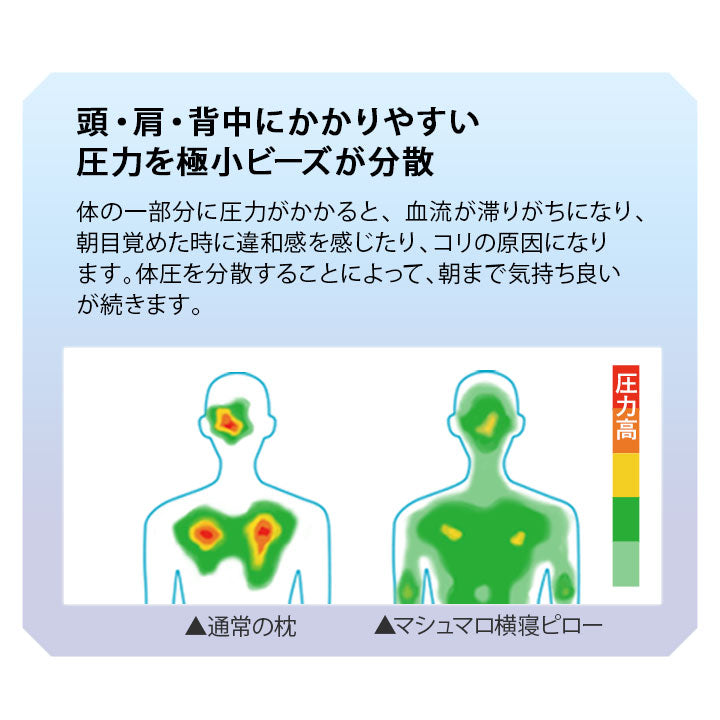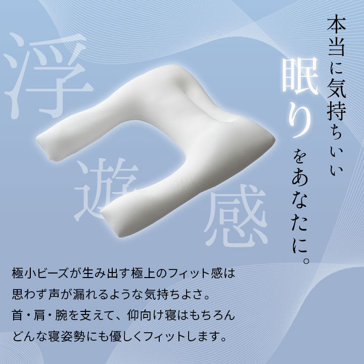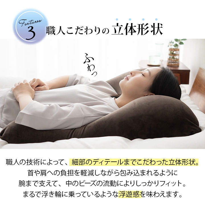 高密度の国産極小ビーズを贅沢に使用し、体型や寝姿勢に極上のフィット感を与えます。