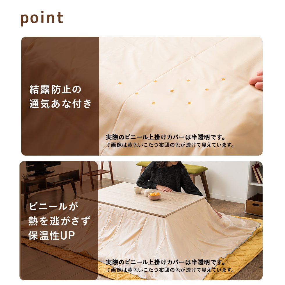 ビニール素材は熱を逃がさず、こたつ内部の保温性を高めてくれます。