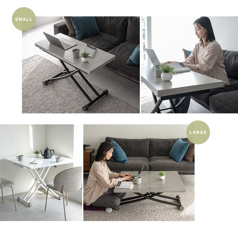 ガス式昇降機能付きで、少ない力で高さ調整ができ幅広い用途に使えます。