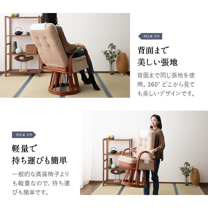 風合いを楽しむ、ラタンの高座椅子ハイタイプ