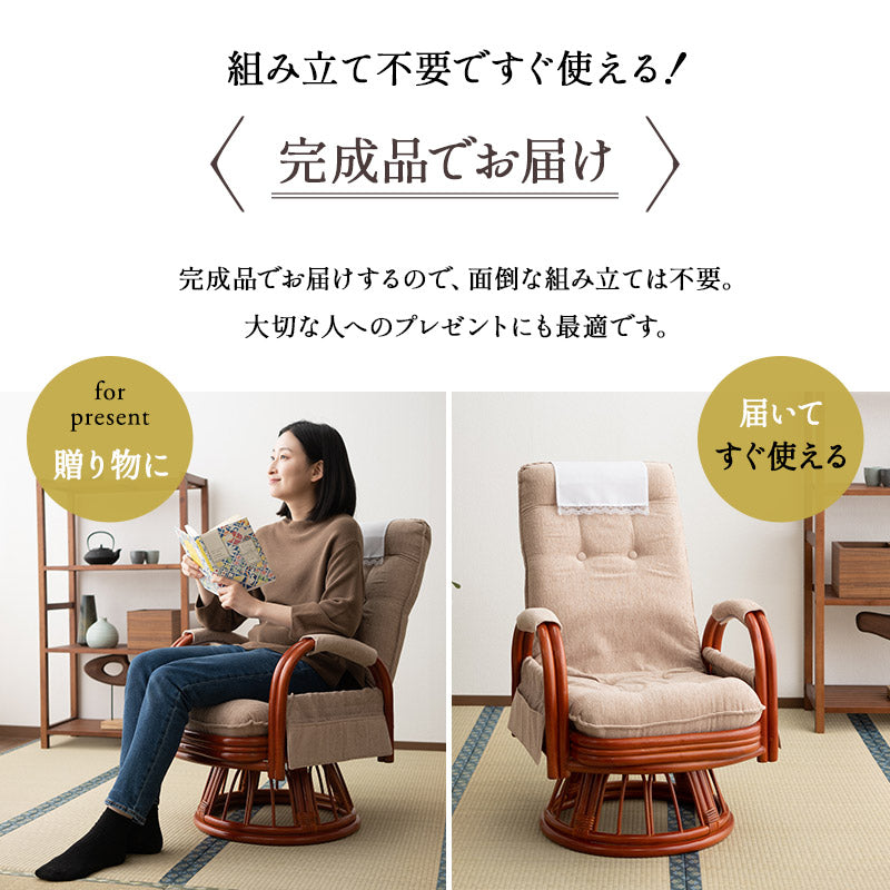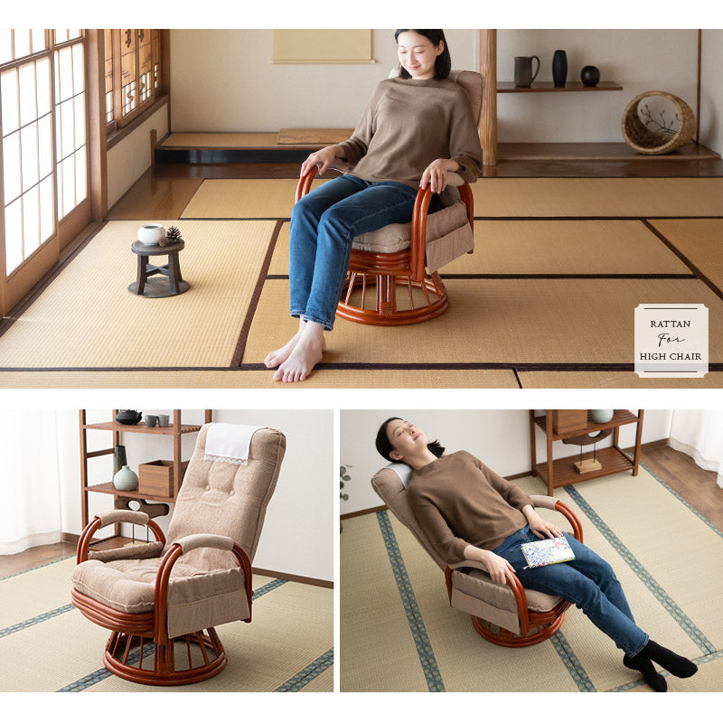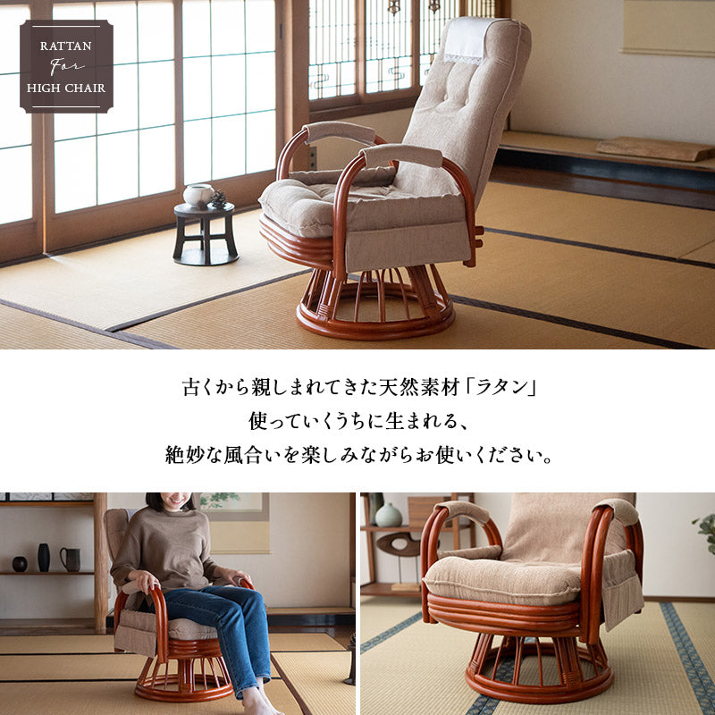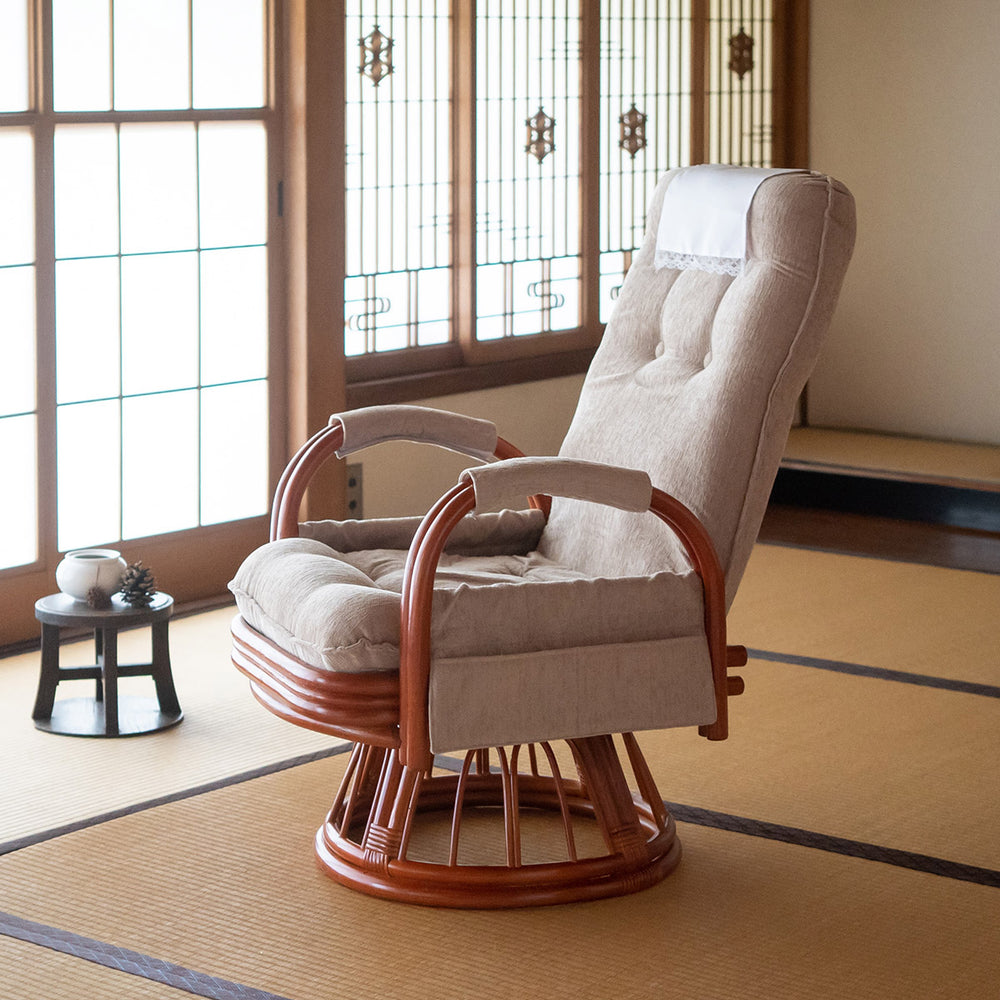 日本で「籐(とう)」と呼ばれるラタンを使用し、軽さ・しなやかさ・強さが特徴の高座椅子です。