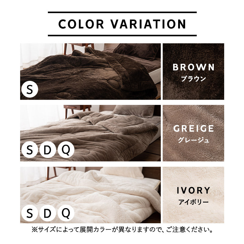 8mmロングパイルフランネルボアが空気をしっかり含み抜け毛も防ぎ、ふかふかの暖かさを長時間キープします。
