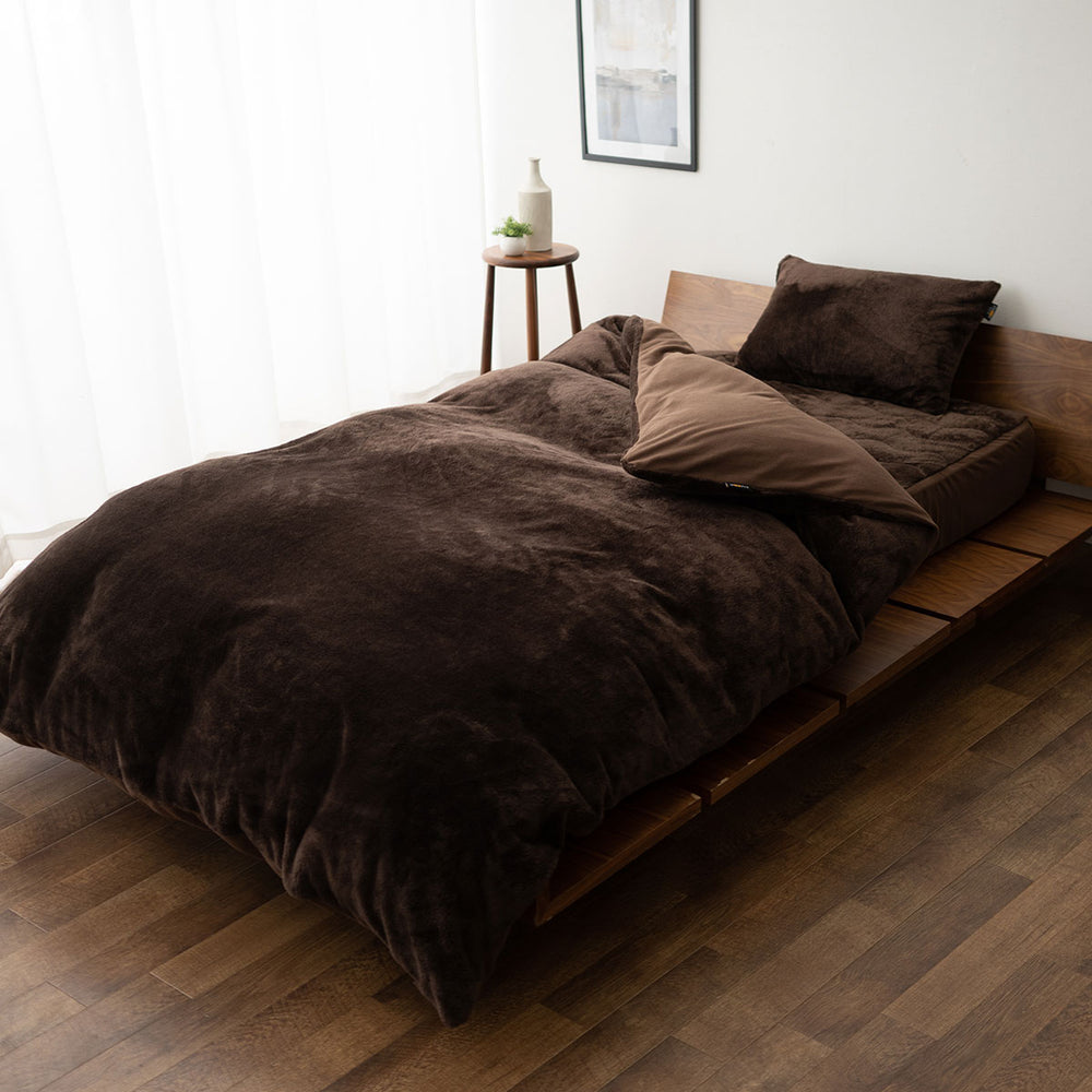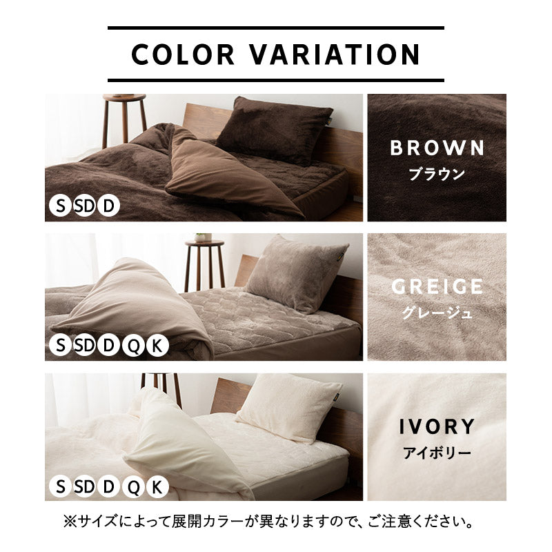 | 掛け布団カバー | ■サイズ シングルサイズ:約150×210cm セミダブルサイズ:約170×210cm ダブルサイズ:約190×210cm クイーンサイズ:約210×210cm キングサイズ:約230×210cm ■組成 表地:ポリエステル100%(280g/m² ロングパイルフランネル8mm) グランド部分:ポリエステル50%、レーヨン50%(エムールヒートプラス使用) 裏面:ポリエステル100%(マイクロフリース) ■仕様 8箇所ヒモ付き 片側全開ファスナー式 |