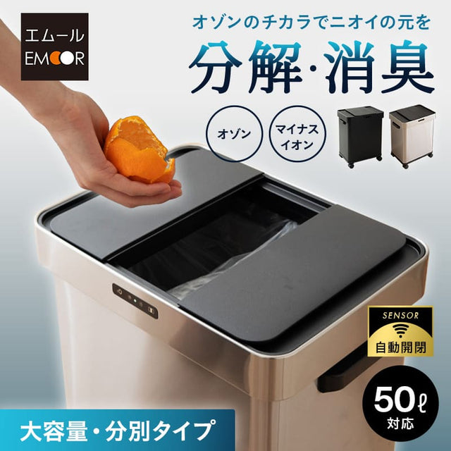 人感センサーで手をかざすだけで自動開閉、50L大容量でごみの分別も簡単に可能です。