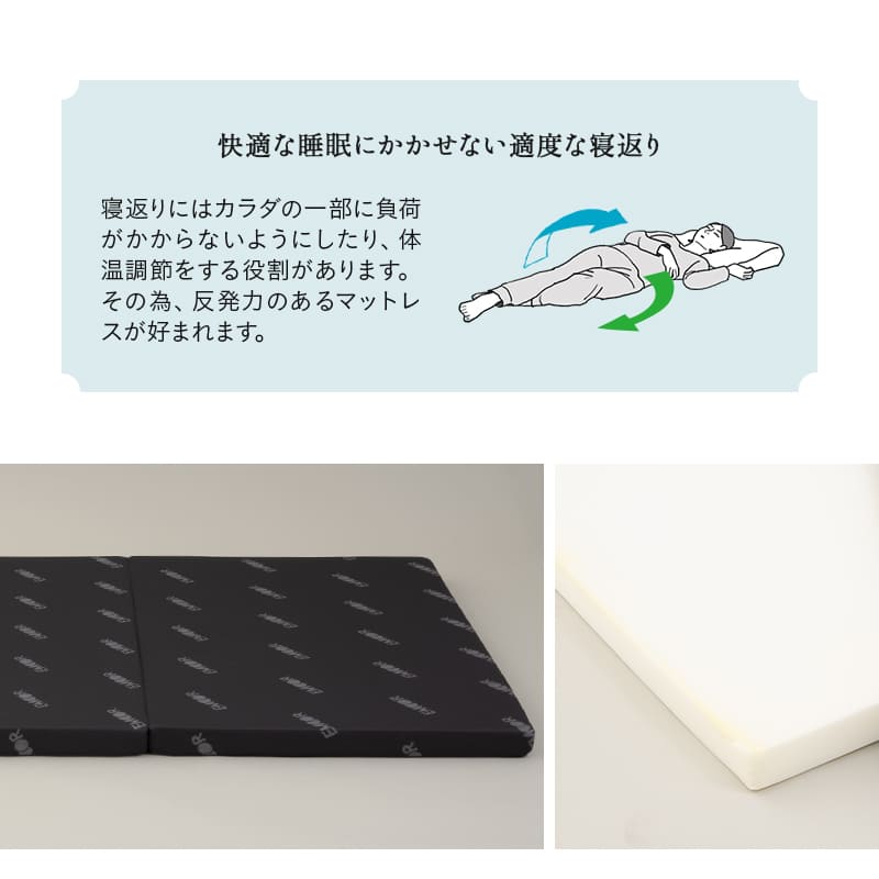 高密度・高反発ウレタンを採用し、身体が沈みにくく快適な寝返りをサポートします。