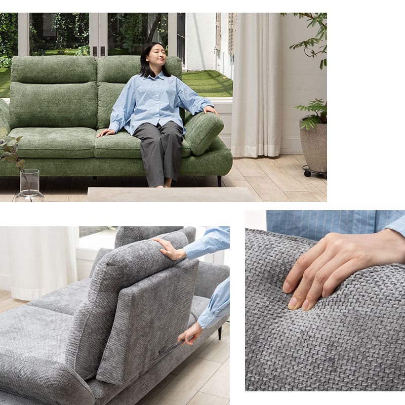 背もたれは前後にスイングすることで座面の奥行きを調節でき、好みに合わせくつろげます。